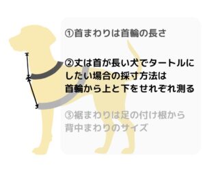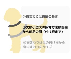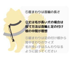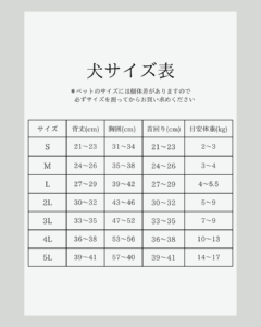 | サイズ | 首回り | 胴回り | 背丈 | 体重目安 |